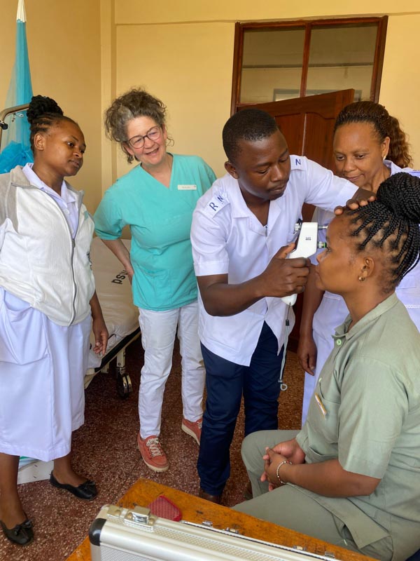 20 Jahre Outreach mit dem Team der Augenklinik und der Zahnklinik des Kibosho Hospital Das Outreach ist ein augen- und zahnärztliches Projekt des AKO welches erstmals vor 2004 von Dr. Achim Miertsch ins Leben gerufen wurde und seitdem fast jährlich stattfinden konnte. Dieses Jahr 2025 fand das Outreach mit vier AugenärztInnen (Dr. Edwin Mnzava (Kibosho Hospital), Dr. Achim Miertsch, Dr. Anke Luhr und Dr. Franziska Boemer (AKO Germany)) und einem Zahnarzt und seiner Ehefrau (Ralph und Kirsten Rohwedder (AKO Germany)) unter der Organisation von Hilda Kimath (AKO Tansania) in Mirerani statt. Nach der Registrierung der PatientInnen werden sie auf die beiden Warteräume aufgeteilt. Für die augenärztlichen PatientInnen geht es nach einigen Voruntersuchungen mit einer – oft durch einen Übersetzer durchgeführten – kurzen Anamnese weiter, bevor eine vollständige augenärztliche Untersuchung, bei Bedarf inklusive Refraktionierung, durchgeführt wird. Die Befunde werden den PatientInnen erklärt und die Therapieempfehlung besprochen. Gegen einen verhältnismäßig kleinen Betrag können die PatientInnen Augentropfen, Salbe und auch Lesebrillen erwerben, in komplizierteren Fällen werden sie in die Klinik in Kibosho einbestellt. Die zahnärztlichen PatientInnen können dank sterilen Instrumenten und OP-Besteck direkt vor Ort – hauptsächlich mittels Extraktionen – behandelt werden. Auch sie werden, wenn nötig, in die Klinik in Kibosho einbestellt und erhalten so die Möglichkeit der zahnerhaltenden Behandlung. So konnten wir dieses Jahr mehr als 200 augenärztliche und über 60 zahnärztliche PatientInnen behandeln.